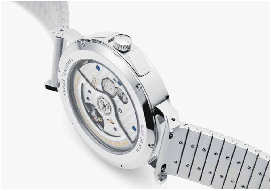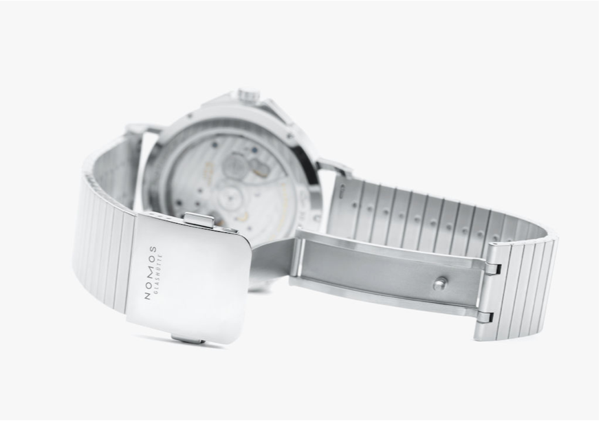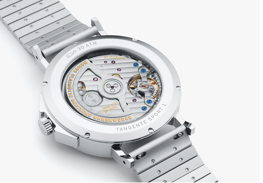 Tangente Sport—here in the version with a marine black dial—is more robust than any previous NOMOS watch. The neomatik date caliber, DUW 6101, is protected against knocks, blows, and leaks by an extra-robust case, sealing, and sapphire crystal glass. The brand-new bracelet, handcrafted from stainless steel and featuring an elegant deployant clasp, is the perfect finishing touch.