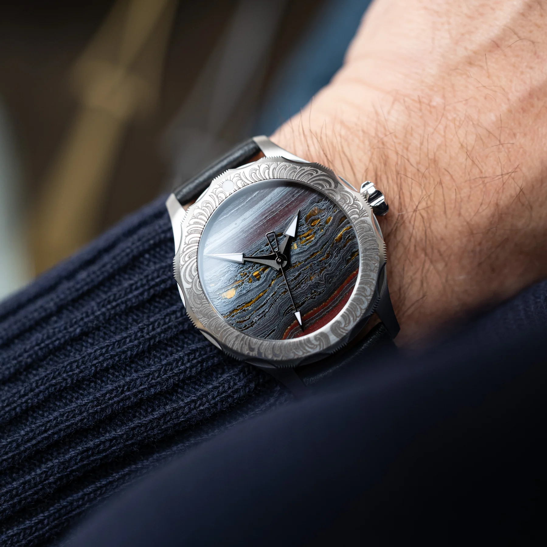 Limited to just 26 pieces, VETEHINEN is rooted in Nordic mythology and brought to life through contemporary artistry. Featuring, for the first time, a Tiger Iron dial, each watch becomes a singular expression of the dialogue between nature’s depths and human precision - unique, unmistakable, and a true reflection of the two masters behind it.